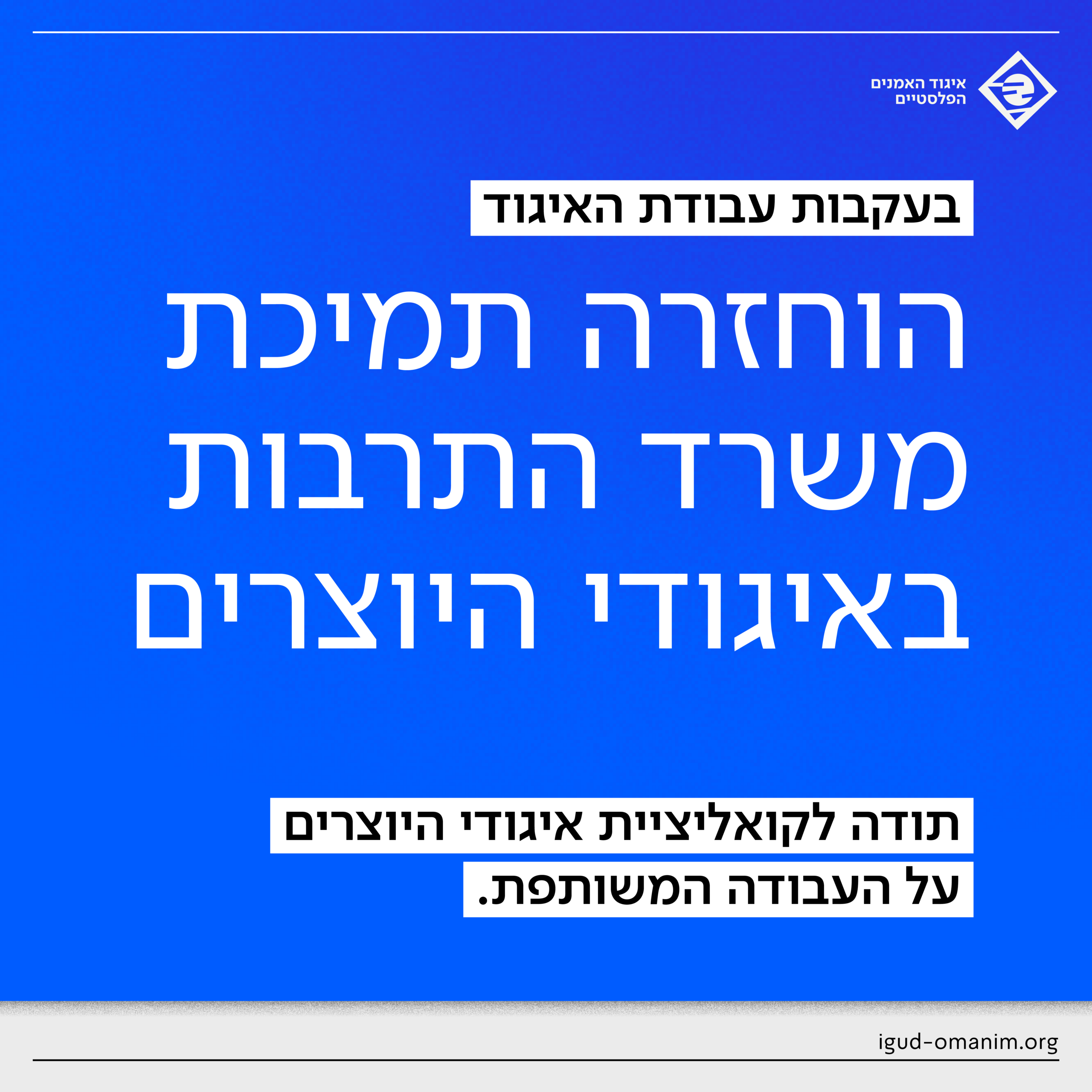 האזינו לרויטל בן-אשר פרץ, ראש צוות המדיניות של האיגוד, בראיון לגואל פינטו על הצלחת הקמפיין להחזרת תקציב איגודי היוצרים ב״גם כן תרבות״
